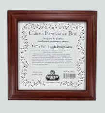 7-1/2" x 7-1/2" visible design area. Fully lined in velvet. Hinged top. Brass feet. Deep mounting area. Includes glass and mounting board.