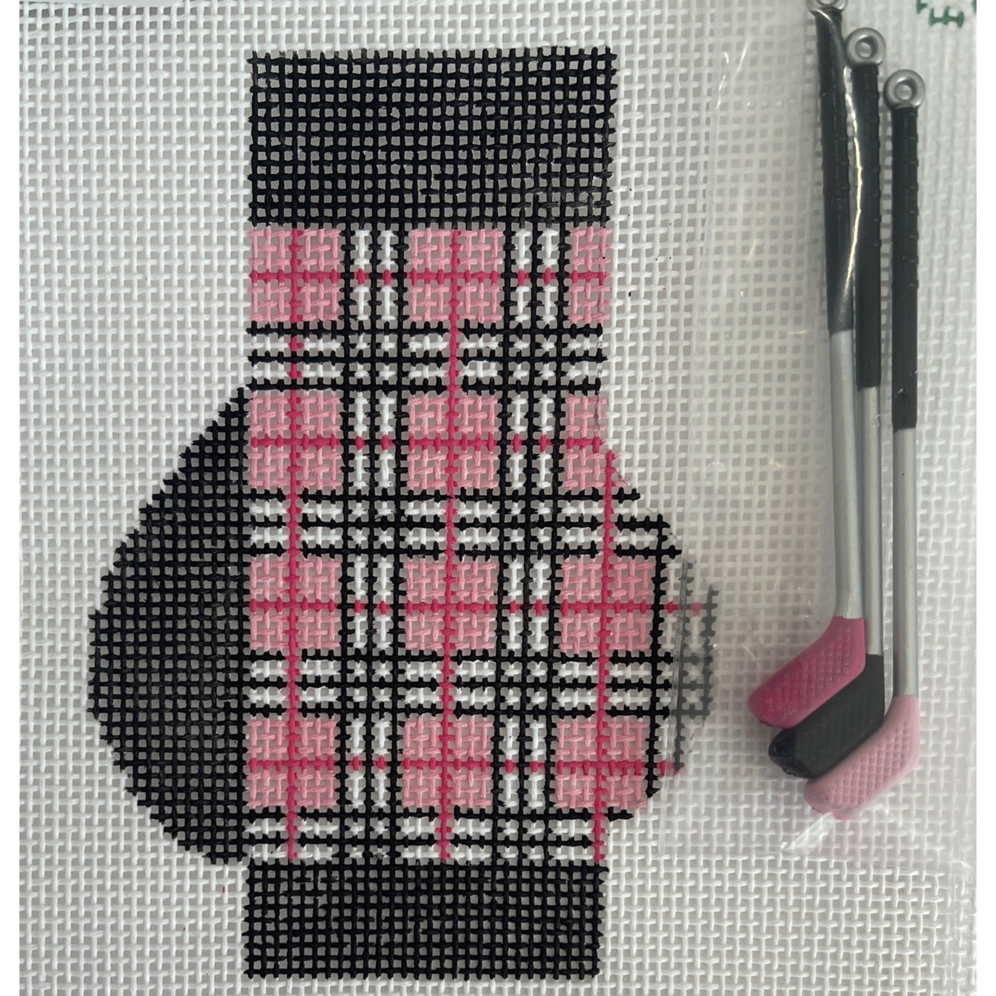 18 Mesh. Design Area: 2-1/2" x 4". Comes with 3 golf clubs.