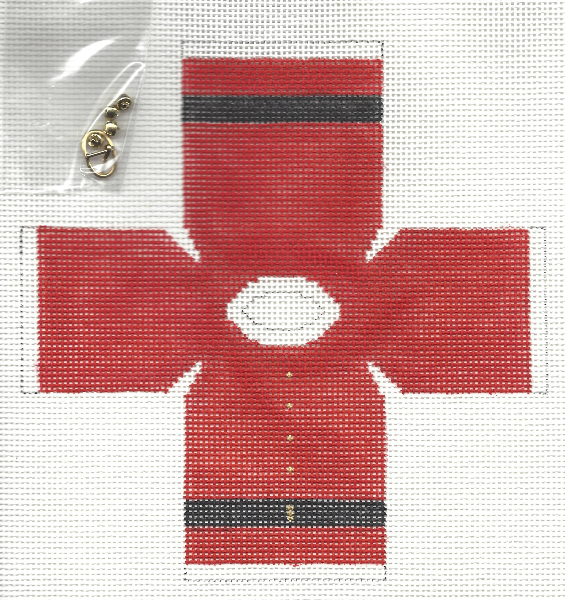 13 Mesh. Design Area: 7-1/2" x 7-1/2". Includes gold buttons and a gold buckle.